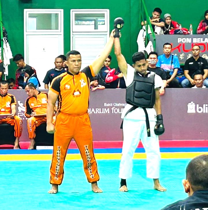 KUDUS, arikamedia.id – Atlet Tarung Derajat Maluku, Maikel Jakson Kay berhasil mengalahkan lawannya asal Kalimantan Timur, Lida Saputra di babak pengisihan yang berlangsung di GOR Djarum Kaliputu, Kudus, Senin sore (13/10/2025).