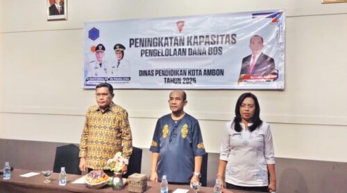 AMBON, arikamedia.id – Dinas Pendidikan Kota Ambon menggelar peningkatan kapasitas pengelolaan Dana Bantuan Operasional Sekolah (BOS) bagi satuan pendidikan SD dan SMP,selama dua hari, di Manise Hotel, Selasa, (07/10/2025).
