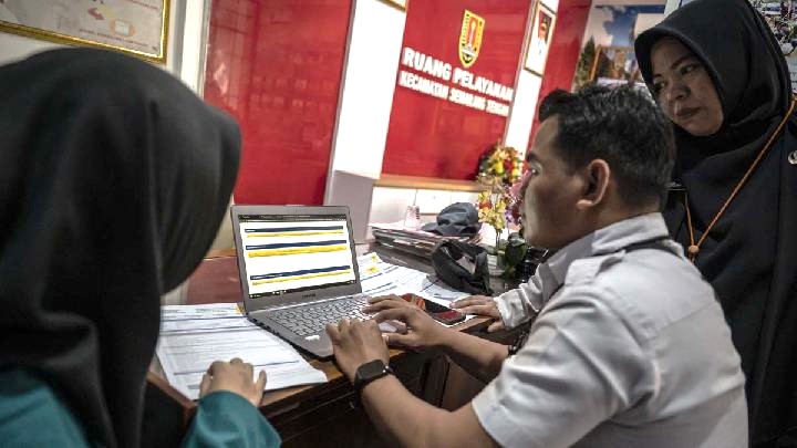 Wajib pajak melakukan pelaporan SPT Tahunan secara mandiri melalui sistem Coretax dalam kegiatan layanan jemput bola di Kantor Kecamatan Semarang Tengah, Semarang, Jawa Tengah, 11 Februari 2026. Antara/Aprillio Akbar