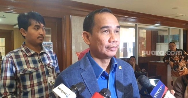 Anggota Komisi III DPR RI Rudianto Lallo saat ditemui wartawan di Komplek Parlemen Jakarta. (Suara.com/Bagaskara)