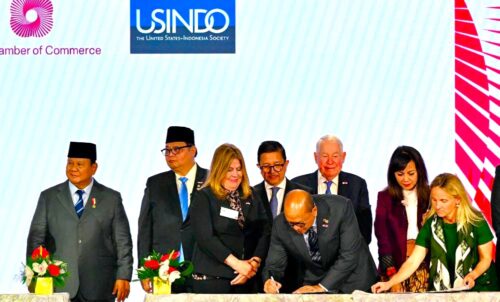 Presiden Republik Indonesia Prabowo Subianto menyaksikan penandatanganan 11 MoU senilai US$38,3 miliar atau Rp650,07 triliun antara pelaku usaha RI-AS dalam sesi roundtable Business Summit yang diselenggarakan oleh US-ABC di Gedung U.S. Chamber of Commerce, Washington, DC, pada Rabu (18/2/2026). Foto: BPMI Sekretariat Presiden