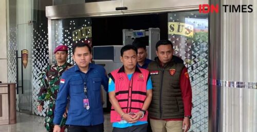Pantauan IDN Times di lokasi, Hery memakai kaos berlogo PLN dibalut rompi tahanan khas Kejaksaan keluar dari Gedung Jampidsus. Sambil diborgol, ia digiring ke mobil tahanan pada Kamis (16/4/2026), pukul 11.19 WIB.