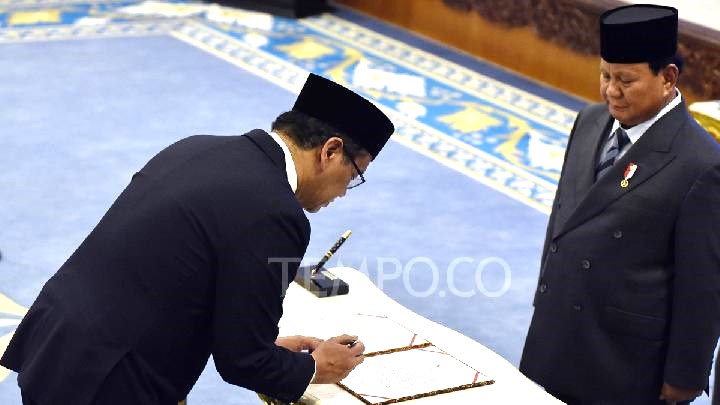 Presiden Prabowo Subianto, melantik dan pengambilan sumpah Menteri Keuangan Purbaya Yudhi Sadewa (kiri) di Istana Negara, Jakarta, 8 September 2025. Tempo/Imam Sukamto