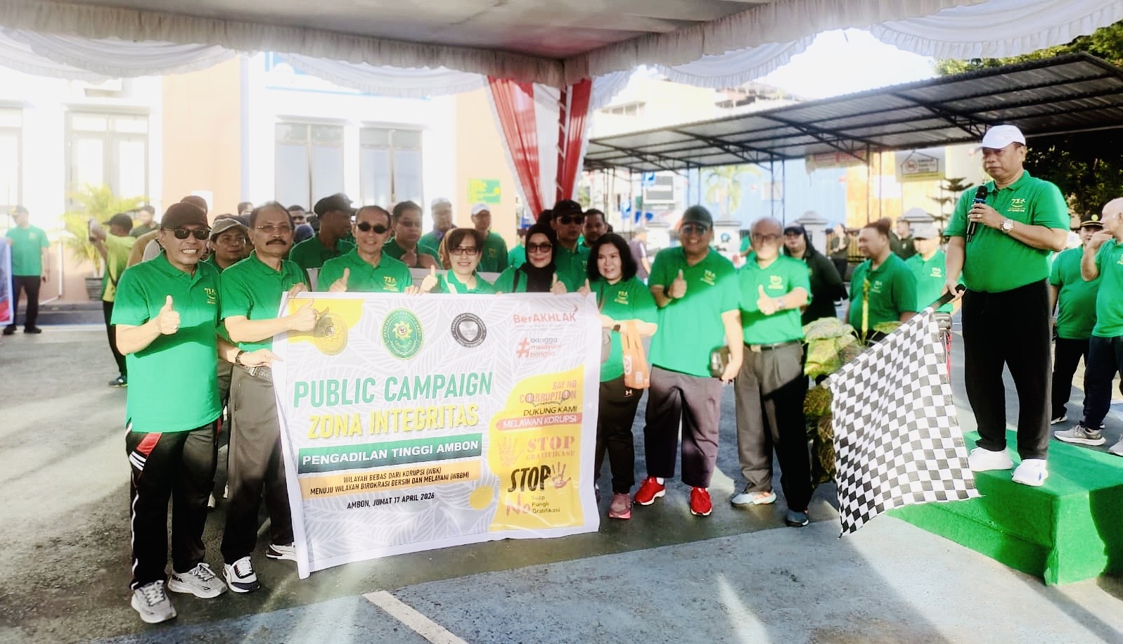 Arikamedia.id, AMBON – Menjelang peringatan Hari Ulang Tahun (HUT) ke-73,Ikatan Hakim Indonesia (IKAHI) menggelar kegiatan jalan sehat melibatkan 4 unsur peradilan yaitu peradilan di bawah Mahkamah Agung, yaitu peradilan agama, peradilan militer, peradilan umum yang meliputi Pengadilan Negeri dan Pengadilan Tinggi , serta Peradilan Tinggi Tata Usaha Negara, di Pengadilan Negeri Ambon, Jumat,( 17/04/26).