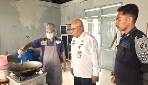AMBON, arikamedia.id – Kanwil Ditjenpas Maluku, Lapas Kelas III Saparua, Kalapas Saparua Pramuaji Buamonabot melakukan pemantauan langsung proses pengolahan menu makan siang warga binaan di dapur lapas guna memastikan kualitas dan standar gizi makanan terpenuhi, didampingi petugas pengamanan pada Selasa, (18/11/25).