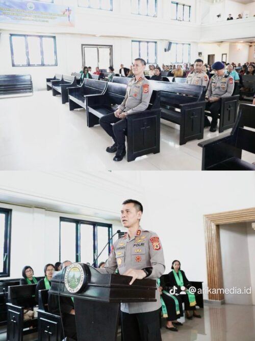 Kapolda Maluku Irjen Pol. Prof. Dr. Dadang Hartanto, S.H., S.I.K., M.Si silaturahmi dan menyampaikan pesan keamanan dan ketertiban masyarakat (kamtibmas) di Gereja GPM Sejahtera Jemaat Poka, Klasis Pulau Ambon Utara, Desa Poka, Kecamatan Teluk Ambon, Minggu (8/2/2026) - Humas Polda Maluku.