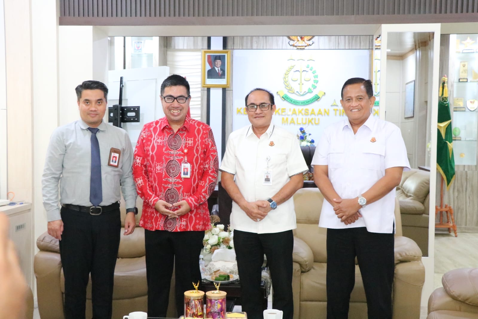 Kepala Kejaksaan Tinggi (Kajati) Maluku, Rudy Irmawan, menerima kunjungan kerja sekaligus silaturahmi Kepala Otoritas Jasa Keuangan (OJK) Provinsi Maluku, Haramain Billady, di Kantor Kejaksaan Tinggi Maluku, Ambon, Rabu (15/4/2026).