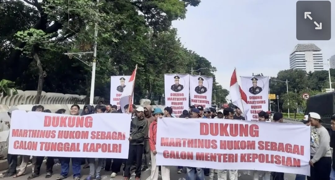 Puluhan massa yang tergabung dalam Komite Nasional Peduli Negeri (KNPN) menggelar aksi unjuk rasa dengan satu suara: mendukung Komisaris Jenderal (Komjen) Marthinus Hukom sebagai calon Kapolri.