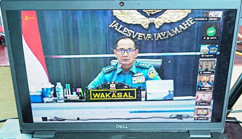 Tampak hadir dalam Vicon yang digelar di di Ruang Kerja Komandan Kodaeral IX, Halong, Kota Ambon, Maluku ini antara lain Wadan Kodaeral lX, Laksma TNl Dr. Muhammad Risahdi, Sahli D Jemen, Kolonel Laut (KH) Slamet Basuki dan tim.