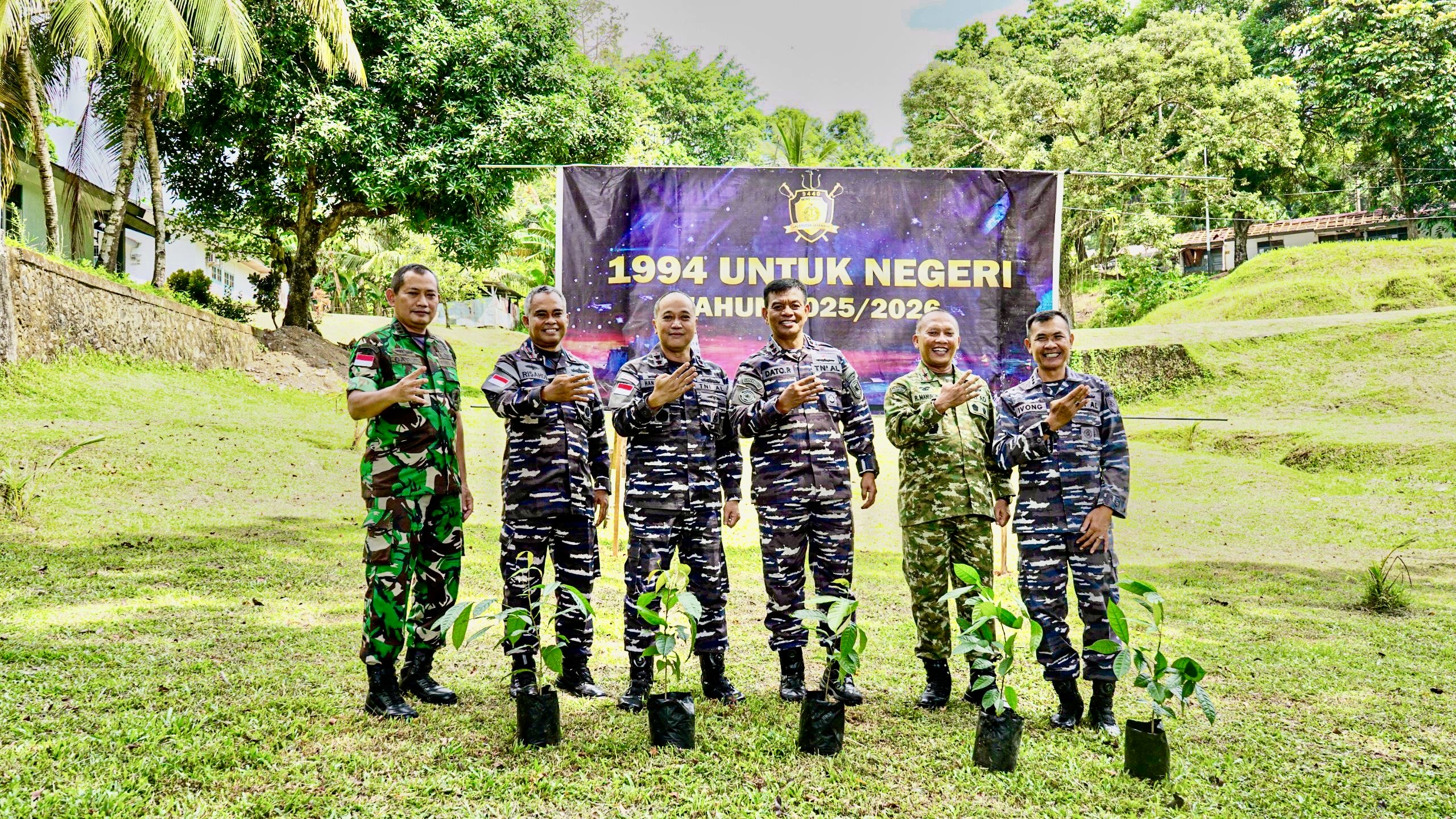 KOMANDAN Komando Daerah Angkatan Laut IX (Kodaeral IX), Laksda TNl Hanarko Djodi Pamungkas, S.H. menyaksikan aksi penghijauan 1994 Untuk Negeri yang dilaksanakan Alumni Akabri 1994 yang memulai penanama bibit Pohon Mahoni di depan Masjid Nurul Iman, Mako Kodaeral IX, Halong, Kota Ambon, Maluku, Selasa (24/2/2026).