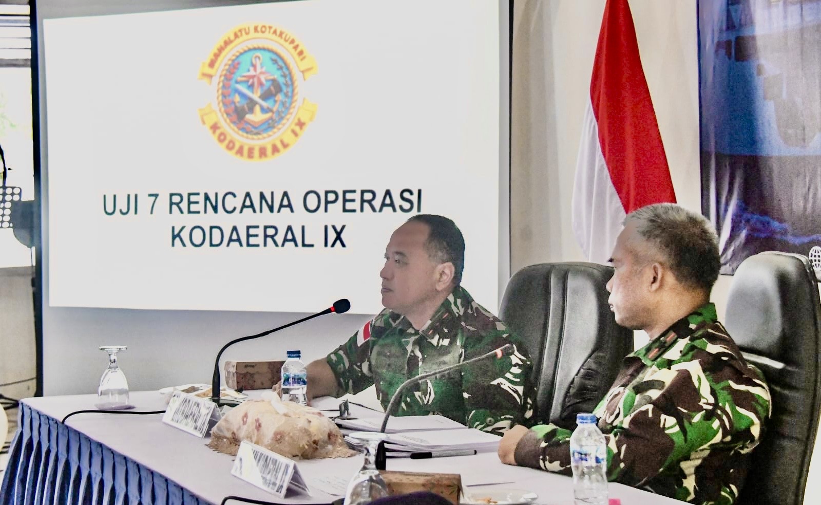 Arikamedia.id, AMBON – Komandan Komando Daerah TNl Angkatan Laut (Dankodaeral) lX, Laksda TNl Hanarko Djodi Pamungkas, S.H. meninjau pelaksanaan Tabletop Exercise (TTX) penyiapan tujuh Rencana Operasi (RO) Kodaeral lX yang dipusatkan di Gedung Arika Waku, Srena Kodaeral IX, Halong, Kota Ambon, Maluku, Jumat (10/4/2026).