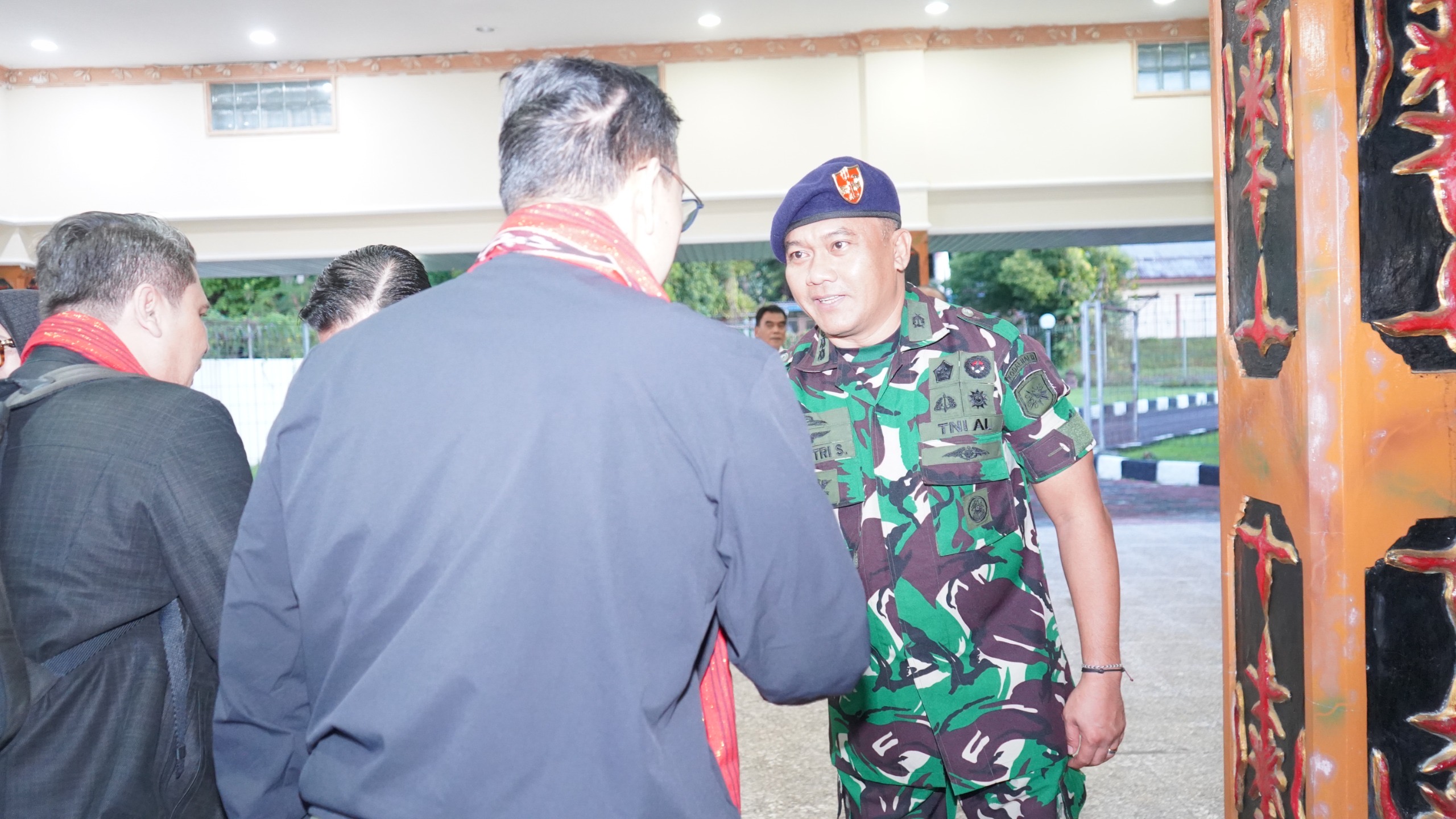 Kapok Sahli Kodaeral IX Kolonel Laut (PM) Joko Tri Suhartono mewakili Komandan Kodaeral IX Laksamana Muda TNI Hanarko Djodi Pamungkas, S.H. turut menyambut kedatangan Wakil Ketua Komisi I DPR RI, Dave Akbarshah Fikarno beserta rombongan saat tiba di ruang VIP Pemda Bandara Pattimura, Kamis (23/4/2026).
