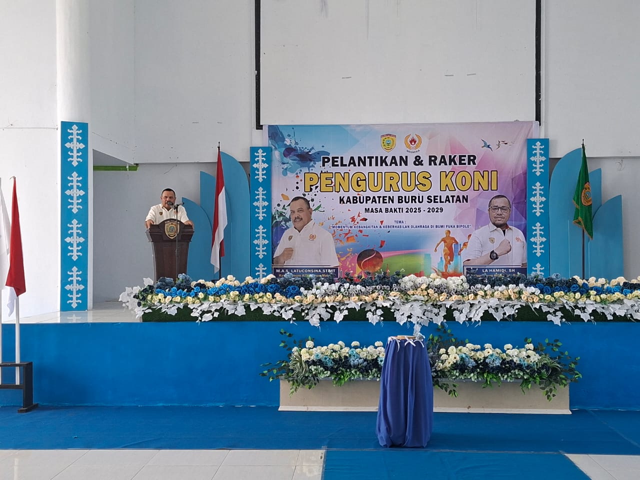 Latuconsina Pesan, Peran Pemda Penting bagi Kemajuan Olahraga pada Pelantikan Pengurus  KONI Bursel Periode 2025-2029,