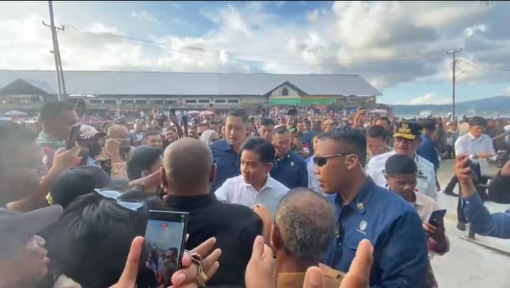 PASAR Mardika, Kota Ambon, sore ini dipenuhi lautan manusia menyambut kedatangan Wakil Presiden (Wapres) RI, Gibran Rakabuming Raka, Selasa, (14/10/2025)