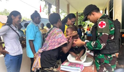 MIMIKA, arikamedia.id – Dalam rangka meningkatkan kesehatan masyarakat, terutama ibu dan anak, Pos Pelayanan Terpadu (Posyandu) Satgas Yonif 301/Pks berkerjasama dengan Puskesmas di Kap. Nayaro, Distrik Mimika Baru, Kab. Mimika, Prov. Papua Tengah, kembali menggelar kegiatan rutin bulanan yang dihadiri oleh berbagai elemen masyarakat, termasuk kader kesehatan, ibu-ibu, dan balita, Senin (27/10/2025), seperti diberitakan dari laman resmi TNI.