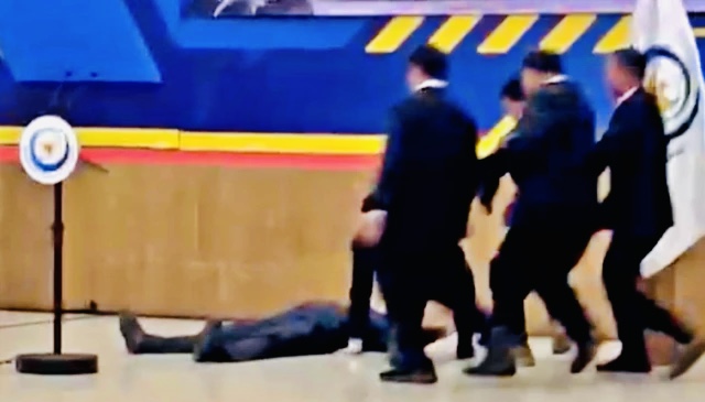 Suara keras sempat terdengar saat Trenggono jatuh. Ia pingsan tepat setelah prosesi penyerahan jenazah dari pihak keluarga untuk dimakamkan secara negara.