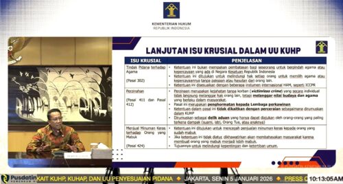 Arikamedia.id, AMBON – Pembaruan besar dalam sistem hukum pidana Indonesia resmi disampaikan kepada publik melalui Konferensi Pers Undang-Undang KUHP, Undang-Undang KUHAP, dan Undang-Undang Penyesuaian Pidana yang digelar secara virtual pada Senin, 5 Januari 2026. Kegiatan ini menjadi momentum penting dalam menandai babak baru reformasi hukum pidana nasional yang lebih modern, transparan, dan partisipatif.