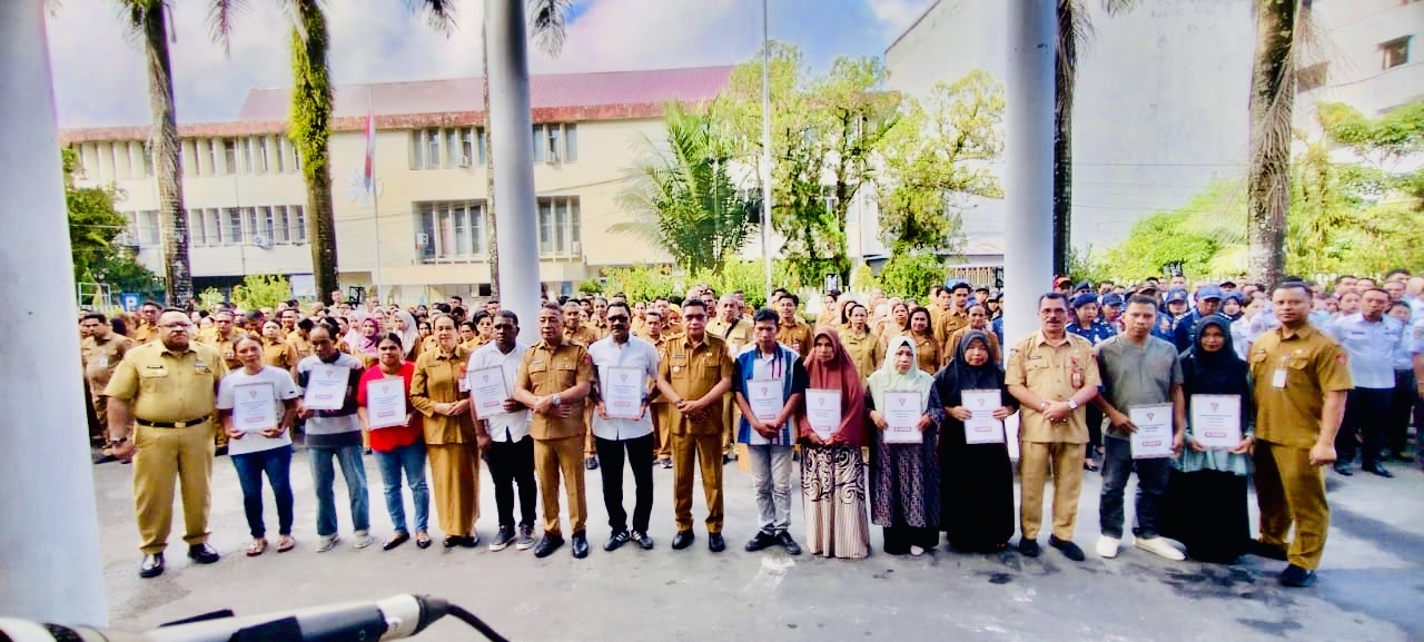 Pemkot Ambon Beri Bantuan Korban Bencana di Apel Pagi
