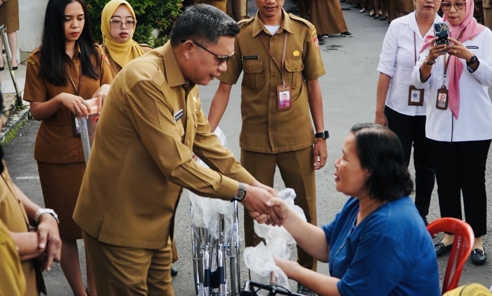 AMBON, arikamaedia.id – Pemerintah Kota (Pemkot) Ambon menggelar apel pagi yang dirangkaikan dengan penyerahan alat bantu bagi penyandang disabilitas dan bantuan program Kearifan Lokal dari Kementerian Sosial,  di halaman belakang Kantor Balai Kota Ambon, Senin,(20/10/2025).