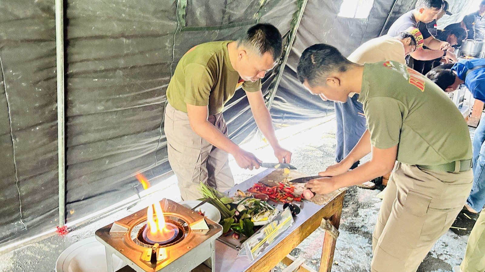 Tak lama berselang, pada pukul 14.30 WIT, personel Satgas Damai Cartenz dan TNI mulai memasak bersama. Suasana akrab dan penuh canda terlihat jelas, mencerminkan soliditas yang terjalin bukan hanya dalam tugas, tetapi juga dalam kebersamaan.