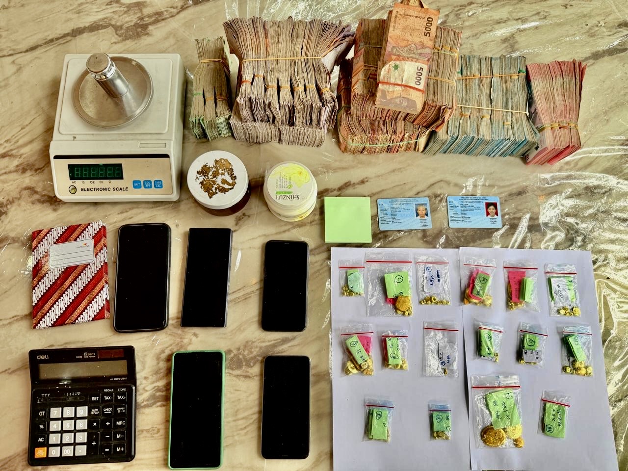 Dalam operasi yang digelar pada Rabu (15/4/2026), tiga orang pelaku diamankan bersama barang bukti uang tunai lebih dari Rp121 juta dan ratusan gram logam emas.