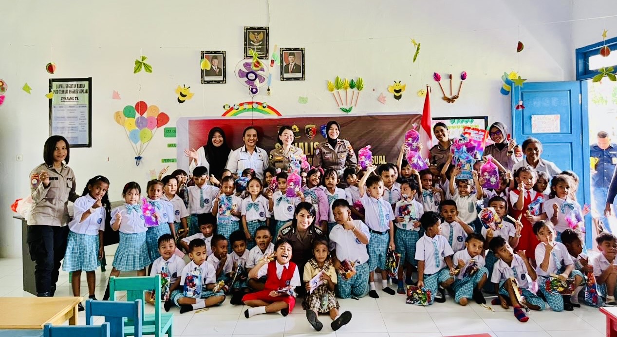 Sebanyak 60 siswa TK Anggrek Saumlaki, Kabupaten Kepulauan Tanimbar (KKT) mendapat edukasi pencegahan Tindak Pidana Kekerasan Seksual (TPKS) dan tertib berlalu lintas dari Polisi Wanita (Polwan) Polres Kepulauan Tanimbar, Rabu (8/4/2026).