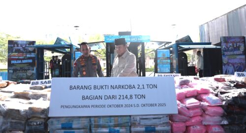 JAKARTA, arikamedia.id – Presiden Republik Indonesia Prabowo Subianto menyampaikan apresiasi tinggi terhadap kinerja Kepolisian Negara Republik Indonesia (Polri) yang berhasil menyita 214,84 ton narkoba dengan nilai ekonomi mencapai Rp29,37 triliun selama periode Oktober 2024 hingga Oktober 2025 atau setahun pemerintahannya.