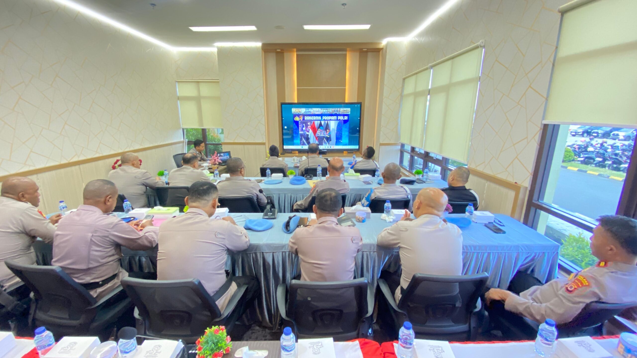 Seluruh peserta mengikuti Rakernis secara terpusat dari ruang rapat Bidang Propam Polda Maluku.