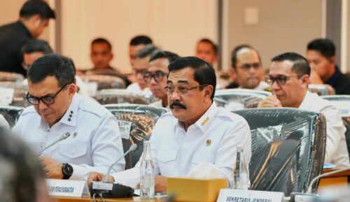 MENTERI Imigrasi dan Pemasyarakatan, Agus Andrianto, menyampaikan pokok-pokok pandangan serta langkah-langkah kebijakan strategis terkait dampak konflik global dalam Rapat Kerja bersama Komisi XIII DPR RI. Kegiatan tersebut dilaksanakan di Gedung Nusantara II DPR RI, Kamis (2/4).