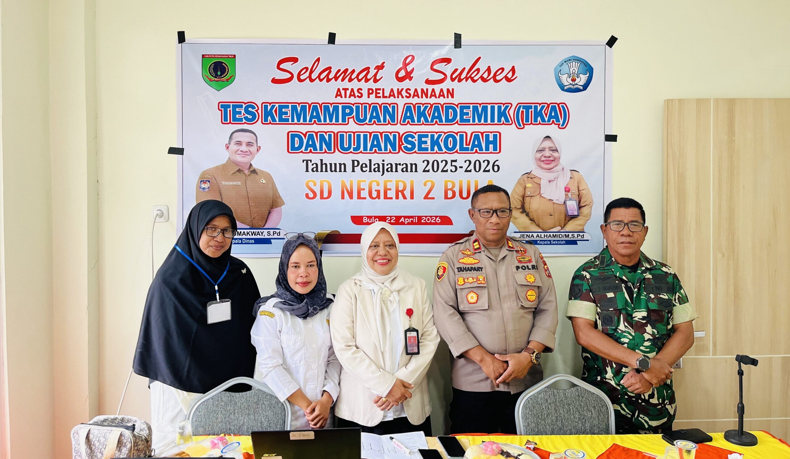 Aula Polsek Bula disulap menjadi ruang pelaksanaan Tes Kemampuan Akademik (TKA) dan Ujian Sekolah tingkat Sekolah Dasar Tahun Pelajaran 2025–2026, guna menjamin kelancaran ujian berbasis digital di wilayah tersebut.
