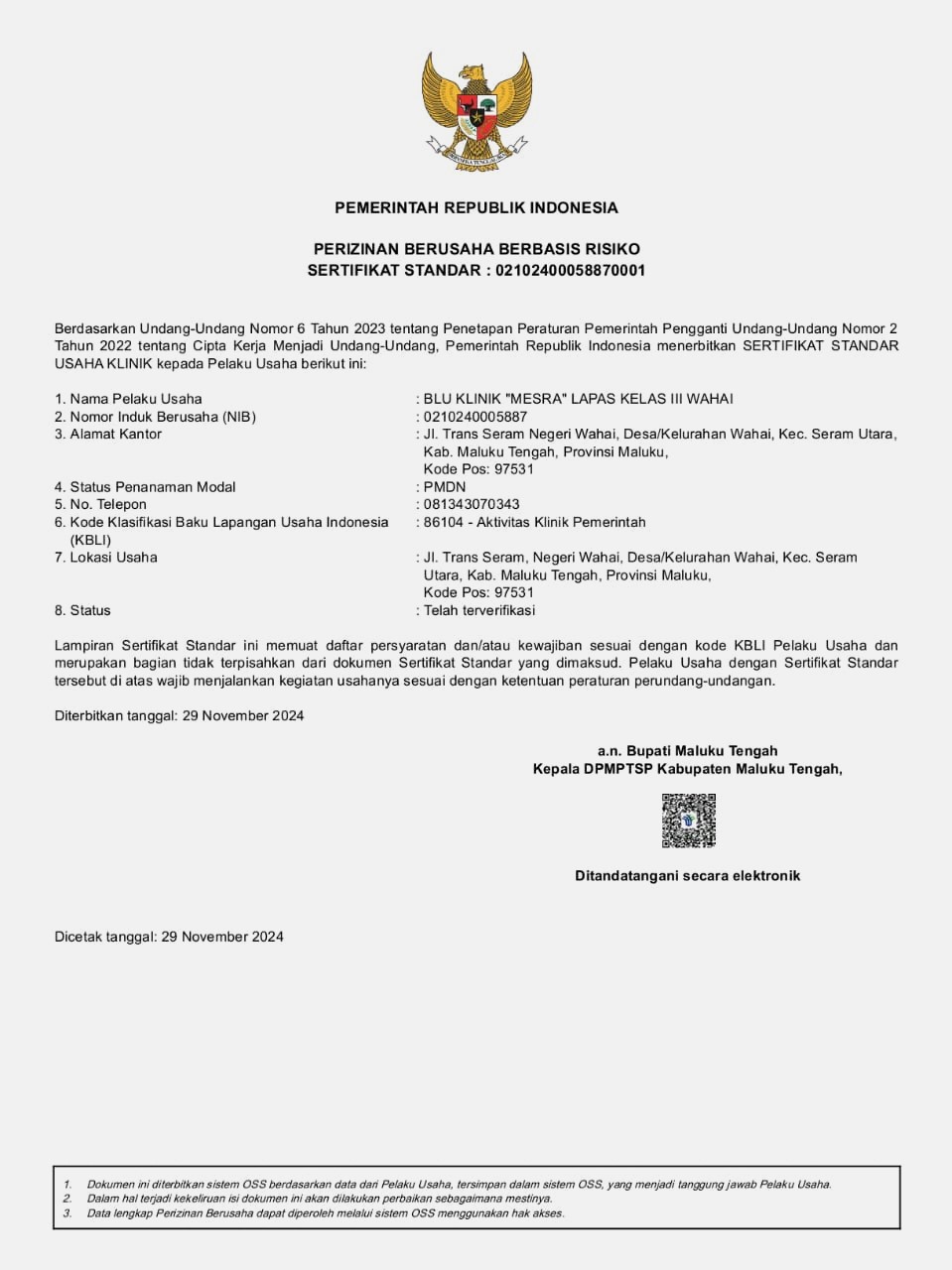 Sah Lapas Wahai Peroleh Izin Operasional Klinik dan Resmi Bersertifikasi