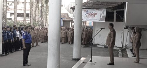 Wali Kota Ambon, Bodewin Wattimena pimpin apel di Kantor Pemkot, Senin (24/11/25).