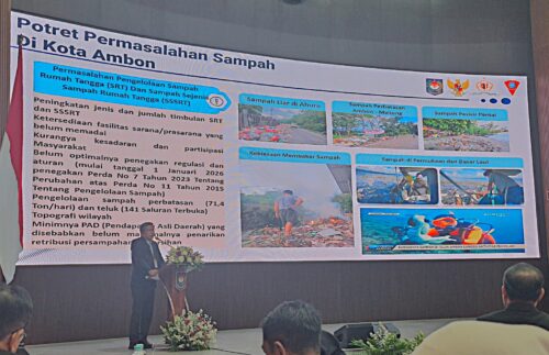 “Kota Ambon menghasilkan volume sampah sekitar 256,41 ton per hari, namun hanya sekitar 180,5 ton yang dapat diangkut ke tempat pembuangan akhir (TPA), dan yang masuk ke fasilitas pengurangan ada 22,60 ton. Sisanya sekitar 53,35 ton per hari yang terbuang ke lingkungan, yang dapat berdampak pada: pencemaran air, tanah, dan udara,” bebernya.